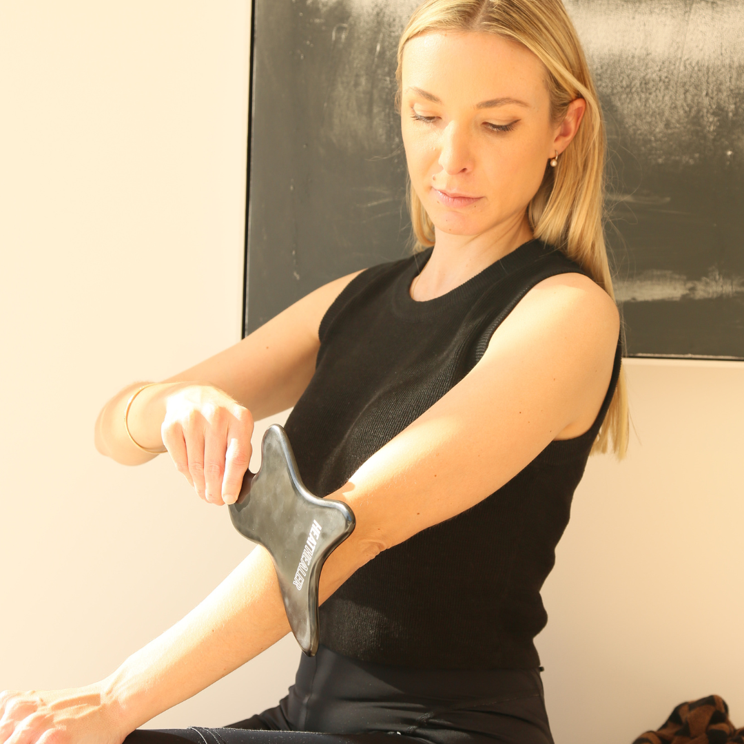 Gua sha helps reduce water retention by stimulating the lymphatic system, which aids in the removal of excess fluids and toxins from the body. This gentle scraping technique also improves blood circulation, further supporting the reduction of swelling and puffiness.